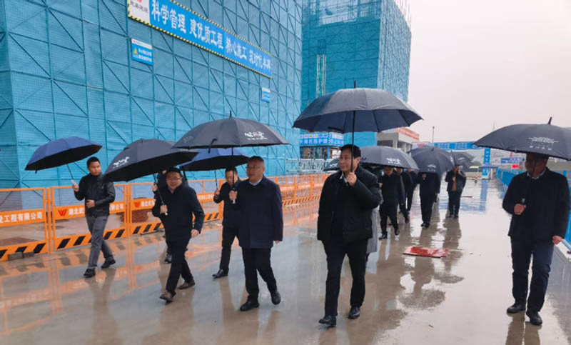 1月4日,气温骤降、冷雨飞扬,武穴市市委书记查俊一行深入武英公司武穴市金榜家苑项目现场,视察指导工作。